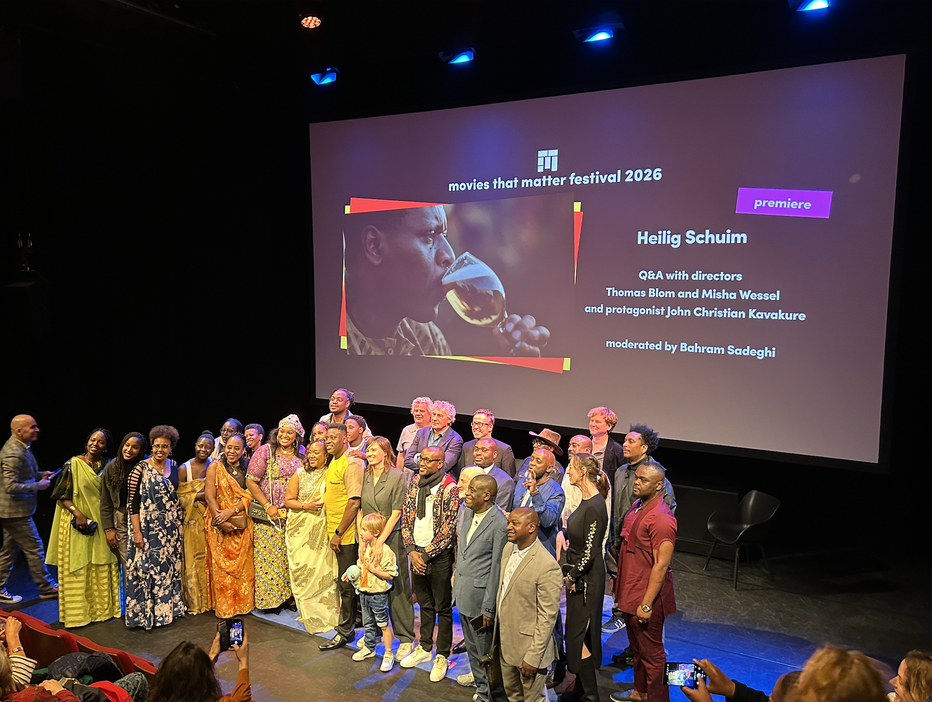 Cosmopolite comme son Bwiza natal, nous sommes une trentaine de tous horizons. Il y a ceux qui sont venus de Belgique, des Pays-Bas. Je suis heureux de retrouver mon ami de la RPA Mashok, Excellent Nimubona — qui figure, je l'apprends, au générique du film pour sa contribution à la production. La boucle est belle.